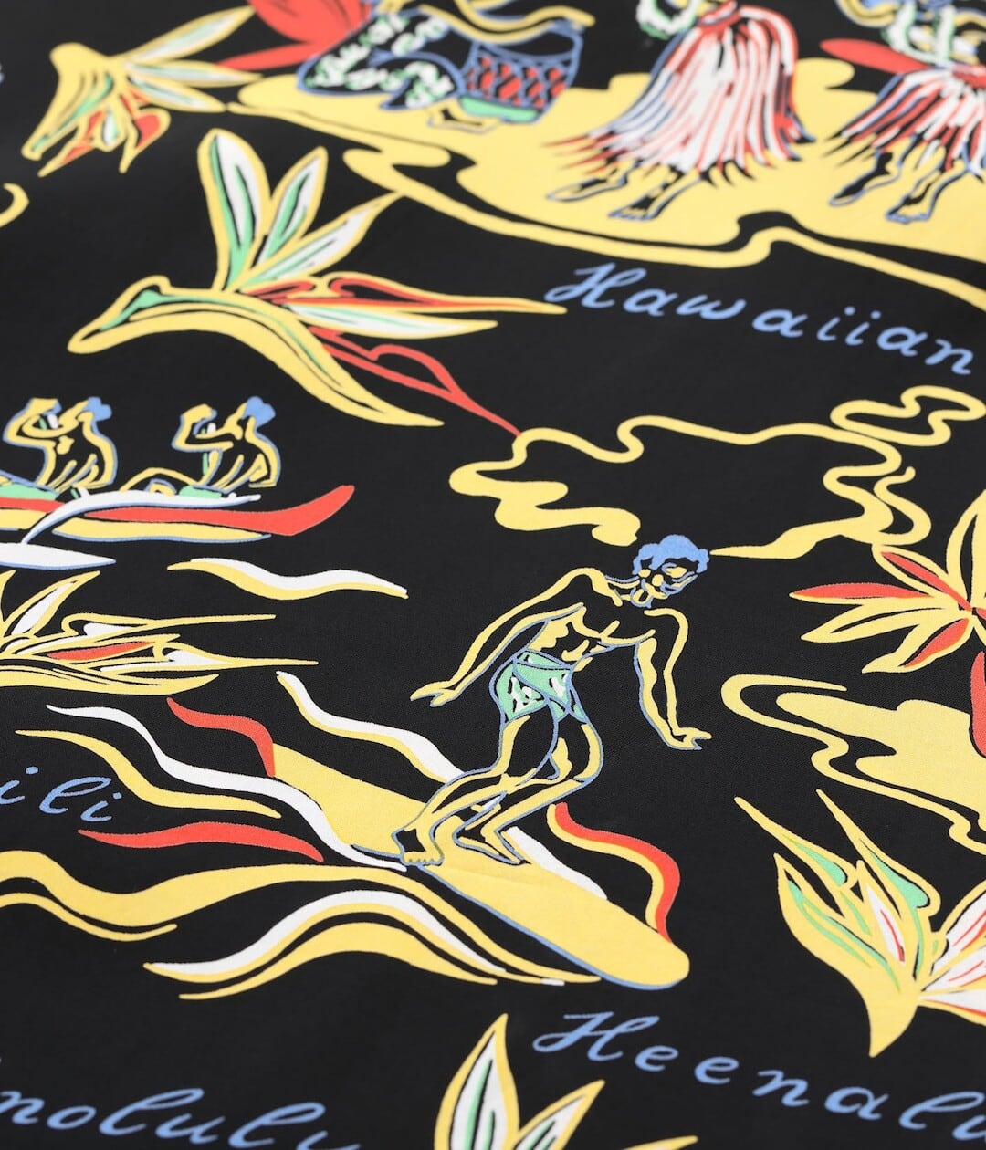 フラ、ダイビング、サーフィンなど、ハワイのアクティビティは当時からアロハシャツのモチーフとしても人気が高かった。戦後から本格的にシャツのマーケットに参入したホロホロ・アパレル・マニュファクチャリング社のブランド「ホロホロ」が製作した一枚。トーマス・スティールによって書かれたアロハシャツの専門書「The Hawaiian Shirt」にも掲載されており、ヴィンテージ・コレクターからの支持も厚く、コンディションの良い個体に出会えるチャンスは少なくなってきている。