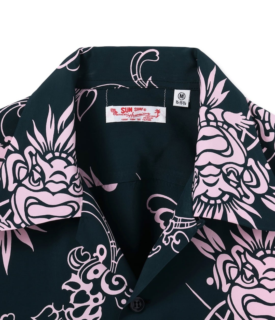 ポリネシアの多くの島で神の化身として崇拝されてきたティキ。自然界に存在するあらゆるものに神が宿るとされてきたハワイにおいてもティキの存在は特別で、アロハシャツのモチーフとして幾度となく登場してきた。その中でもティキをメインモチーフとしたデザインは、ポリネシアンブームが最高潮に達した1960年代以降に多くみられる。ここで紹介する作品は最初期の頃、フィラメント生地に単色で抜染されたデザインで、非常に希少価値が高い。