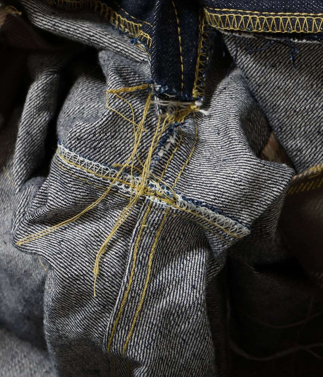 デニム生地は日本で生産しており、1943年モデルをベースに米綿を使って当時の紡績技術が未熟で不均一なムラ感の強い荒々しい生地を再現。縫製はシュガーケーンのアメリカ工場で行い、今回はヴィンテージの一個体を完全再現するのではなく、型紙やパーツ、ステッチワークなどのディテールについて、これまでに確認してきたさまざまな大戦期の個体の特徴を組み合わせ、オリジナルの要素も加えた1940’sスペシャルモデルに仕上げた。なかでも特筆すべきはポケットの袋地。1940年代の大戦期にROUGH WEAR社が民間用レーベル「ROUGH-IN」で製作したヴィンテージジャケットのツイルチェック裏地を再現し、ネルポケットとして使用している。