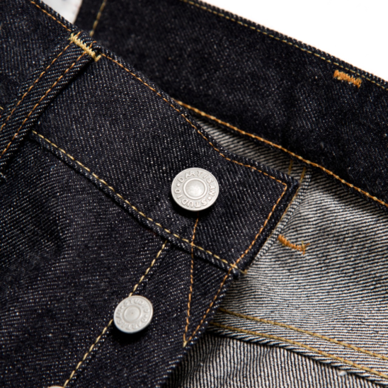 ダルチザンのジーンズで最もベーシックなオリジナルストレートモデル。昔の貴重なシャトル織機で織り上げた15オンスの分厚いデニム生地は、しっかりとした穿き心地、そして濃色に染められた色合いが特徴。このジーンズは濃色の為、色落ちには時間を要するがヒゲやアタリがはっきりと表れる特徴を持っている。またサンフォライズド・スキュー加工を施していない未加工の生地の為、洗うと1951年代のヴィンテージジーンズのように縮みやねじれが生じる。銅製の打ち抜きリベット、オリジナル山羊革パッチ、ボタンフライ、ブルーセルビッチ。