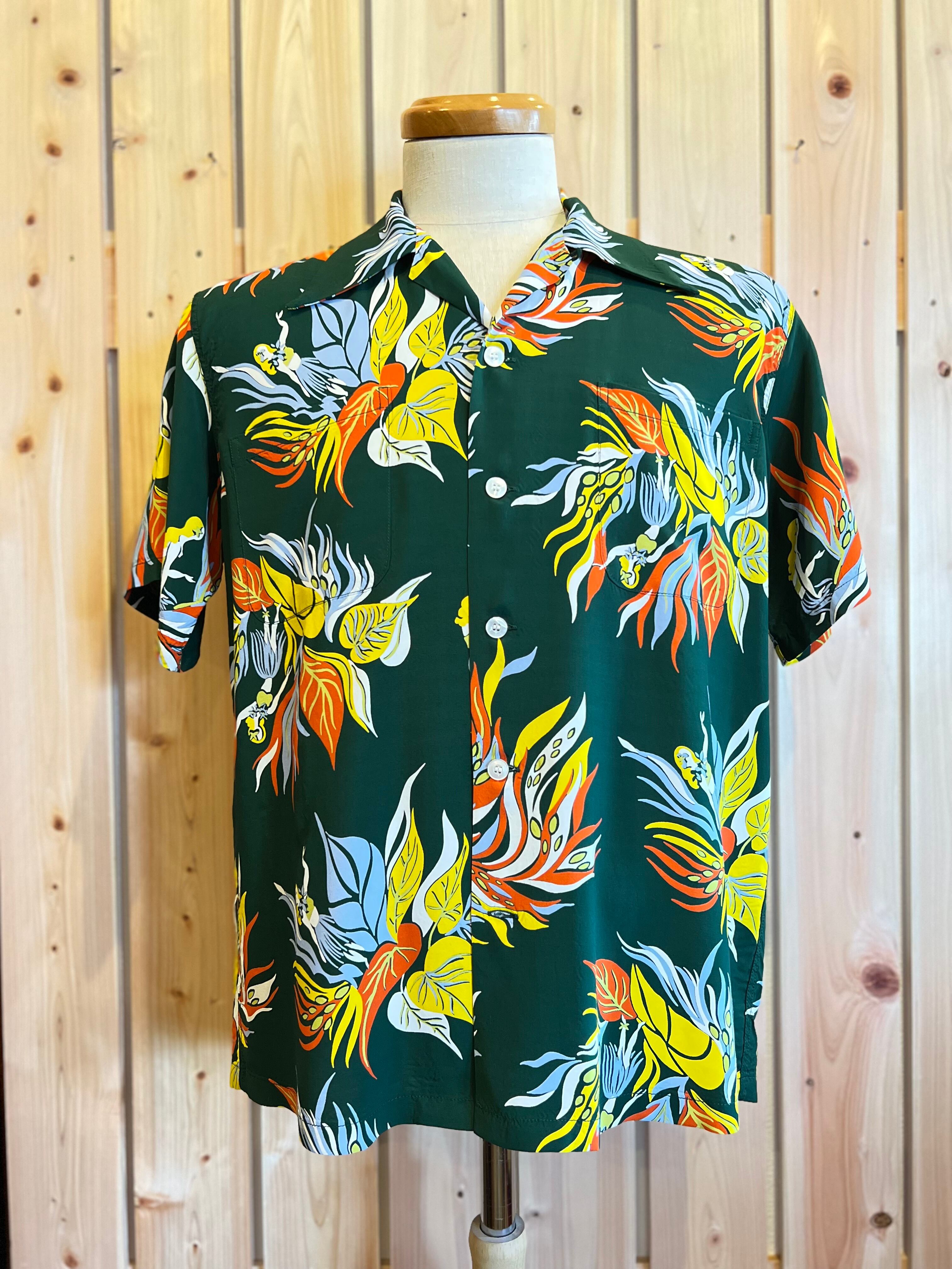 地染めした生地に5色の抜染を駆使してプリントされた完成度の高いデザイン。デフォルメして描いた花の中にフラガールをレイアウトする構図はハワイのブランドが得意とした手法だが、アメリカ本土ではデューク・ブランドが初めて発表し、人気を博した。デューク自身も非常に気に入っていた柄のひとつで、当時このシャツを着て多くのメディアに登場した。