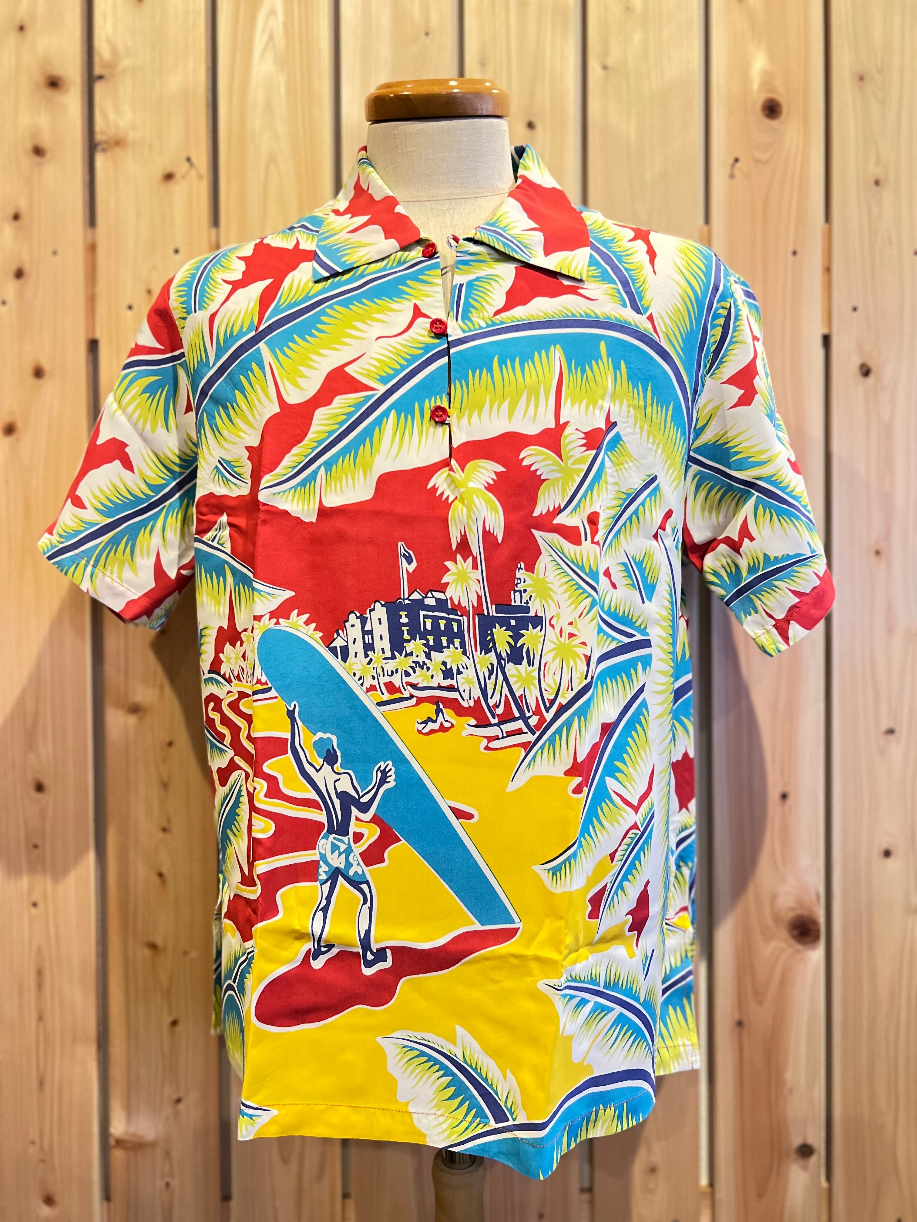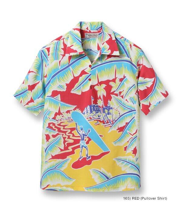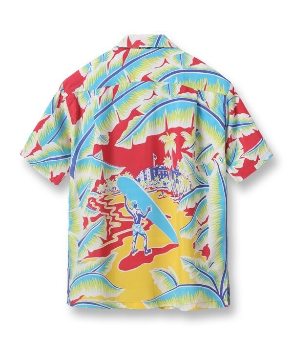 今回復刻した「サーフ・ライダー」は、フィラメント糸の経糸とスパン糸の緯糸で織り上げたレーヨンフジエット生地を使い、ポスト印象派の画家「ウルフギャング・ウルフ」がテキスタイルデザインを担当。プリントをニューヨークの大手生地メーカー、コーン・ホール・マークス(COHAMA)が手掛けていた。50年代のハワイアンシャツとしては非常に珍しいプルオーバータイプとオープンシャツの2種類が確認されているが、共にヴィンテージ市場では現存する数が非常に少なく、希少価値も高い。