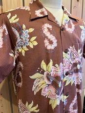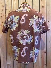 1940年代にサンフランシスコとハワイの間を航行していた豪華客船、マトソンライン。そのレストランメニューの表紙がシャツのモチーフとして使われている通称「メニュー柄」。画家フランク・マッキントッシュによって描かれたこのデザインは当時から人気を博し、現代においても世界中のコレクターたちが愛してやまないヴィンテージアロハシャツの名作のひとつ。