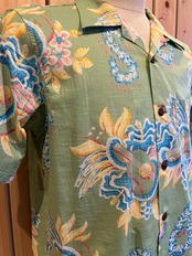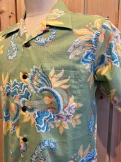 1940年代にサンフランシスコとハワイの間を航行していた豪華客船、マトソンライン。そのレストランメニューの表紙がシャツのモチーフとして使われている通称「メニュー柄」。画家フランク・マッキントッシュによって描かれたこのデザインは当時から人気を博し、現代においても世界中のコレクターたちが愛してやまないヴィンテージアロハシャツの名作のひとつ。