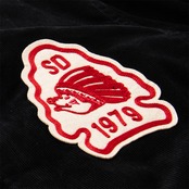 背中のインディアンの部分はフェルト地の上に相良刺繍をしています。
