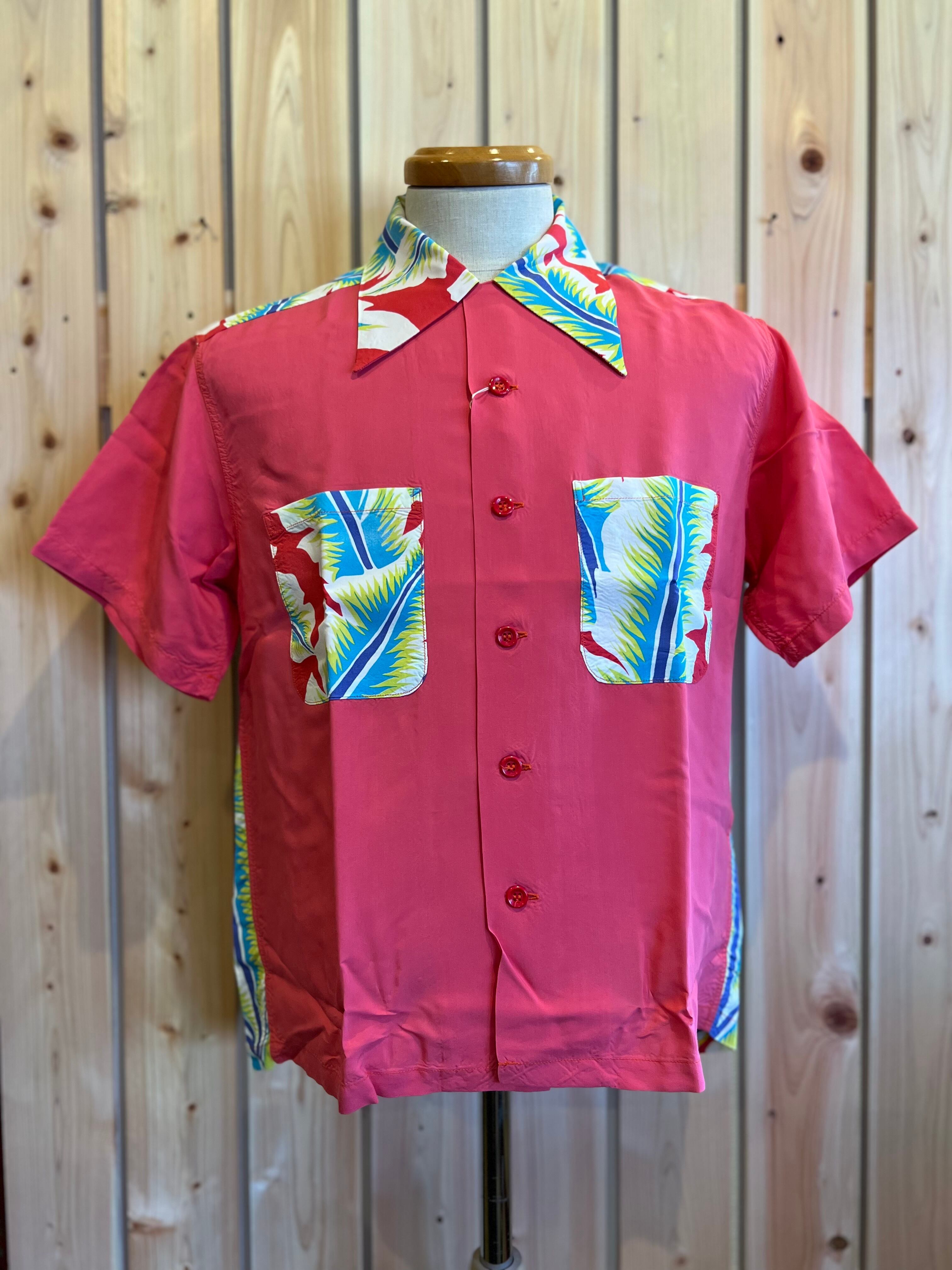 今回復刻した「サーフ・ライダー」は、フィラメント糸の経糸とスパン糸の緯糸で織り上げたレーヨンフジエット生地を使い、ポスト印象派の画家「ウルフギャング・ウルフ」がテキスタイルデザインを担当。プリントをニューヨークの大手生地メーカー、コーン・ホール・マークス(COHAMA)が手掛けていた。50年代のハワイアンシャツとしては非常に珍しいプルオーバータイプとオープンシャツの2種類が確認されているが、共にヴィンテージ市場では現存する数が非常に少なく、希少価値も高い。